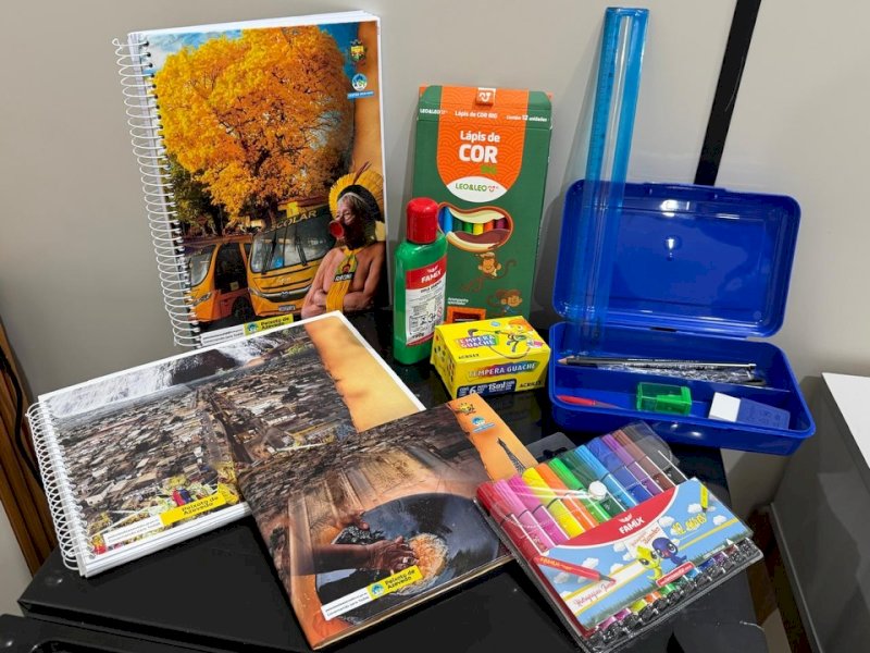 Os kits foram organizados de acordo com cada etapa de ensino — Kit Creche e Pré-Escola e Kit Séries Iniciais — e são compostos por cadernos de capa dura, lápis de cor, lápis preto, borracha, apontador, estojo, canetinhas, tinta guache, pincel, régua, caneta, giz de cera, massa de modelar e cola.