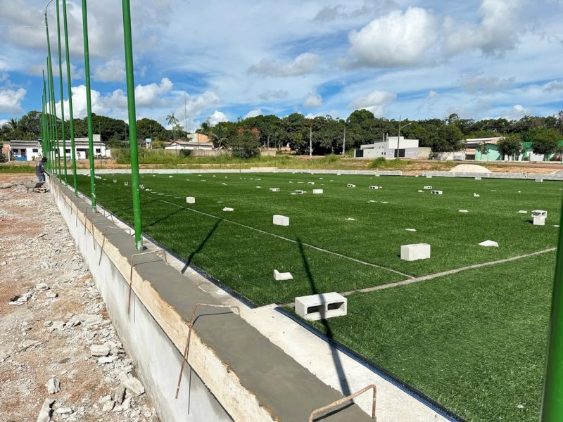 O campo sintético já está recebendo o gramado e o alambrado, e a iluminação em LED será instalada nas próximas semanas.
