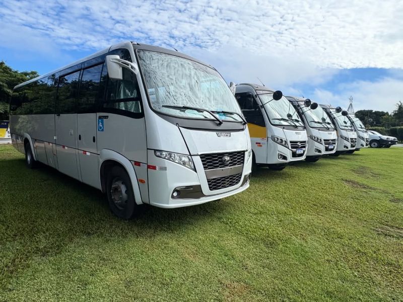 Ao todo, serão entregues 04 ônibus escolares, 01 ônibus modelo executivo para a Secretaria Municipal de Educação, além de 02 caminhonetes destinadas ao Departamento de Transporte Escolar e ao apoio logístico das unidades escolares do campo e da cidade.