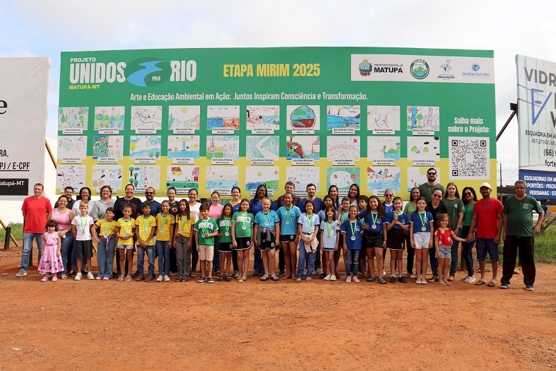 A Secretaria de Meio Ambiente de Matupá realizou a inauguração do outdoor expositivo do concurso de desenhos do Projeto Unidos Pelo Rio 2025 – Etapa Mirim, que envolveu alunos da rede municipal de ensino. As crianças receberam medalhas e participaram do plantio de mudas em Área de Preservação Permanente (APP).